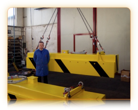 Gli elettromagneti vengono sospesi alla traversa per mezzo di catene che consentono di adattarsi alle innumerevoli irregolarità dei fasci.